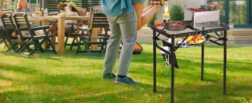 Fastfold Portable Camp Table & Charcoal BBQ Grill ialah aksesori terbaik untuk penggemar aktiviti luar, menggabungkan dengan lancar fungsi meja padat dan gril arang menjadi satu unit boleh lipat yang bergaya. Sesuai untuk berkhemah, mendaki, berkelah atau perhimpunan belakang rumah, penyelesaian serba boleh ini memastikan pengalaman memasak dan menjamu selera yang lancar. Ciri utama termasuk reka bentuk 2-dalam-1, sistem lipatan pantas untuk persediaan pantas, kotak arang dwi untuk memasa
